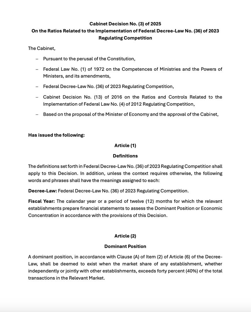 🌟 UAE Competition Law Insight (2025)